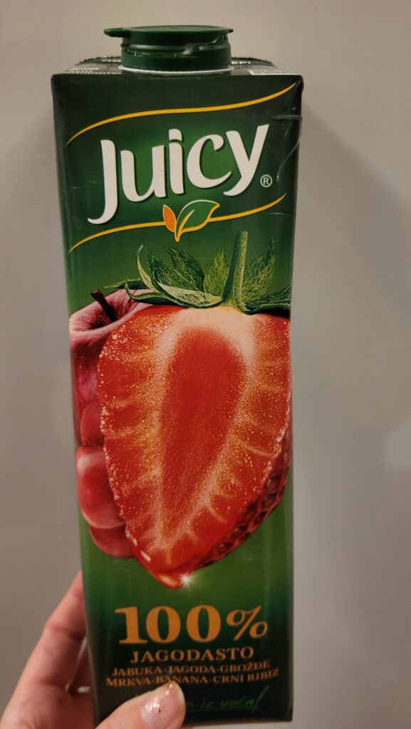 I to jest właśnie taki sok, do którego kupna namawiam. Nie ma takich w Polsce: są to takie bardzo gęste, przecierane soki w mniej spotykanych u nas smakach. Czyli truskawkowy, morelowy, brzoskwiniowy.